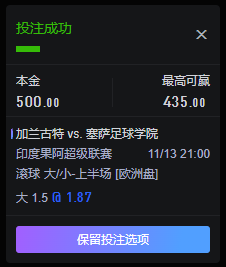 11/13 21:00 0-1 印度果阿超级联赛 加兰古特 vs. 塞萨足球学院 半场大1.5